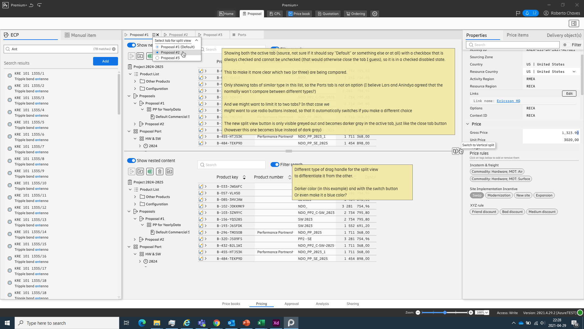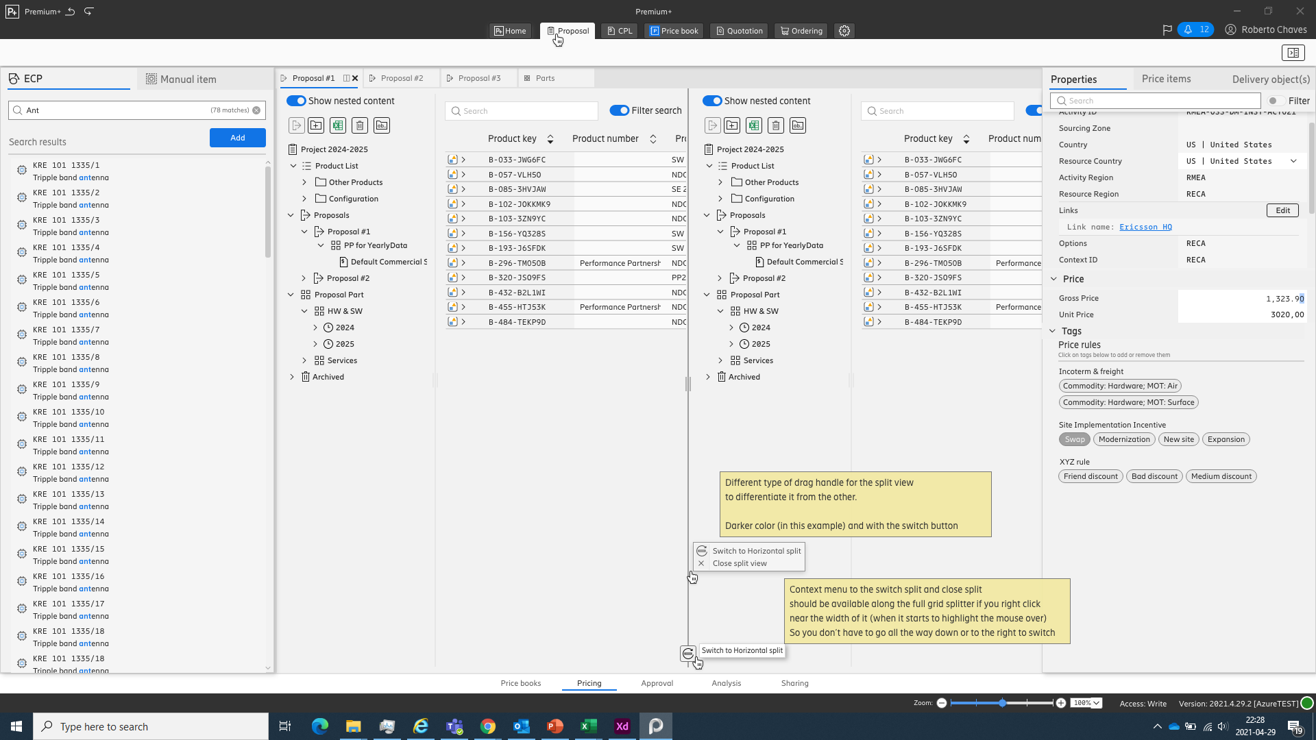 The success of the DCPB tool led to it becoming the foundation on which we built all other applications. The UX/UI patterns I created, together with the robust modular code framework developed by the team, became the basis for EDS+. We expanded both the design system and the framework as new modules were added, including Proposal, CPL (Customer Price List), Price Book, Quotation, and Ordering.