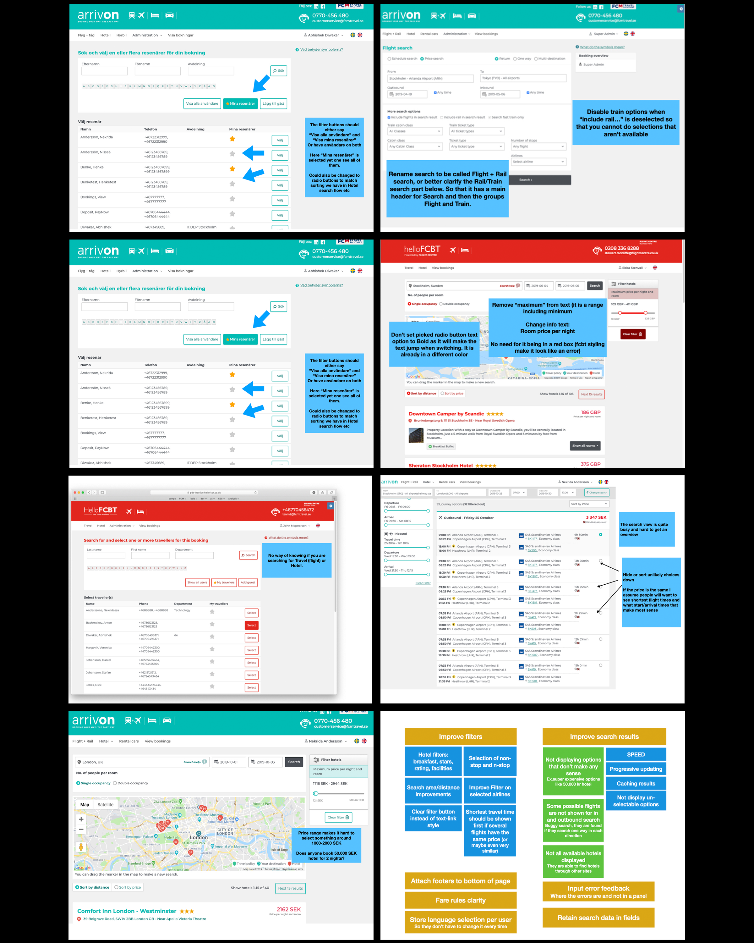 Once I was onboard and understood the tool and business goals, I ran a competitor analysis, checking how other flight-booking, car-rental, and train-booking platforms tackle similar problems. I noted what worked, what didn’t, and which ideas I liked but wouldn’t suit FCM’s needs. The goal: borrow the best concepts and adapt them for FCM’s corporate-travel audience.