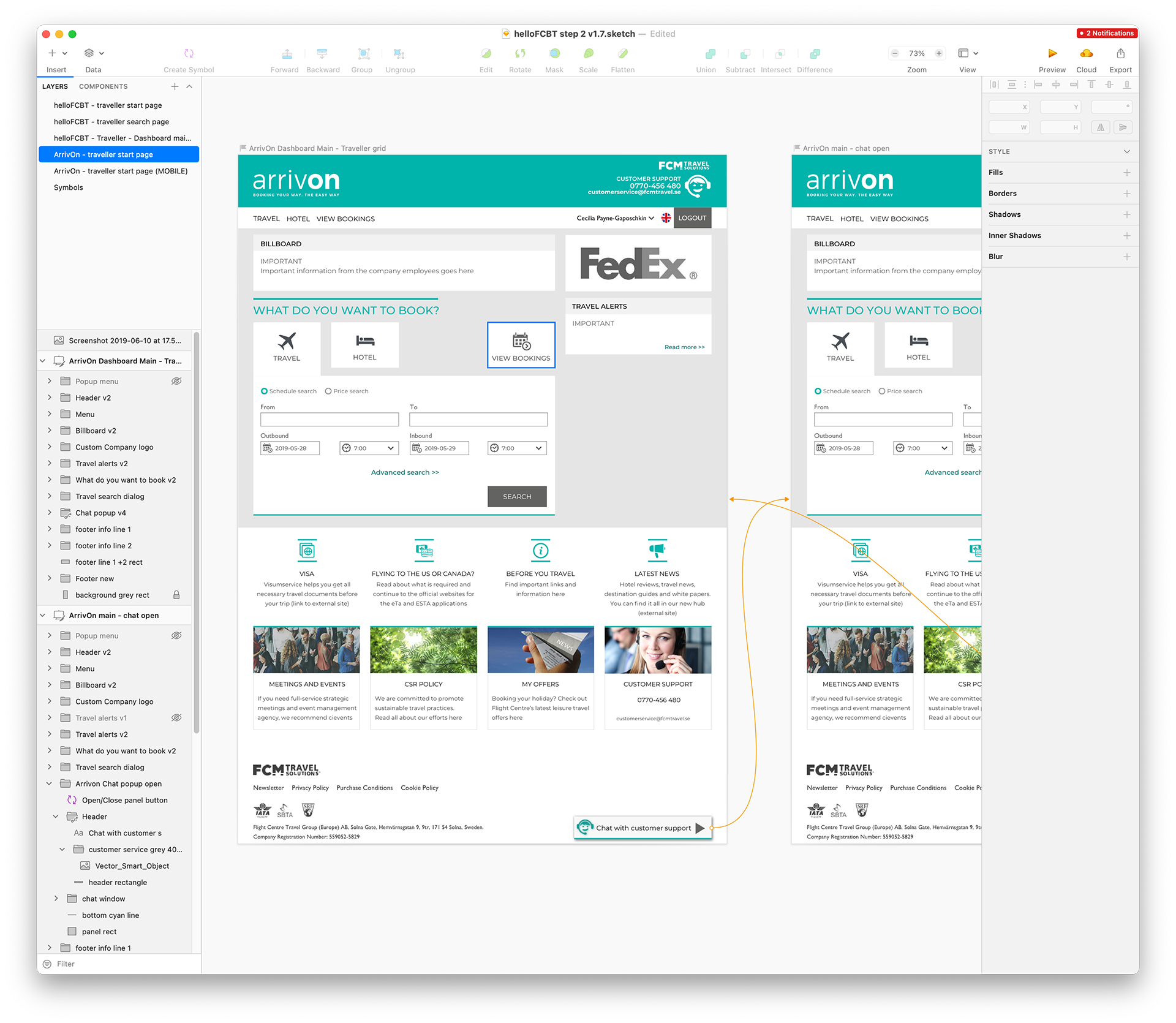 When Flight Centre acquired FCM, I helped turn the platform into a white-label product that matched Flight Centre’s branding while still supporting the ArriveOn base code. I reorganized the design system so developers could keep a single codebase for both brands.