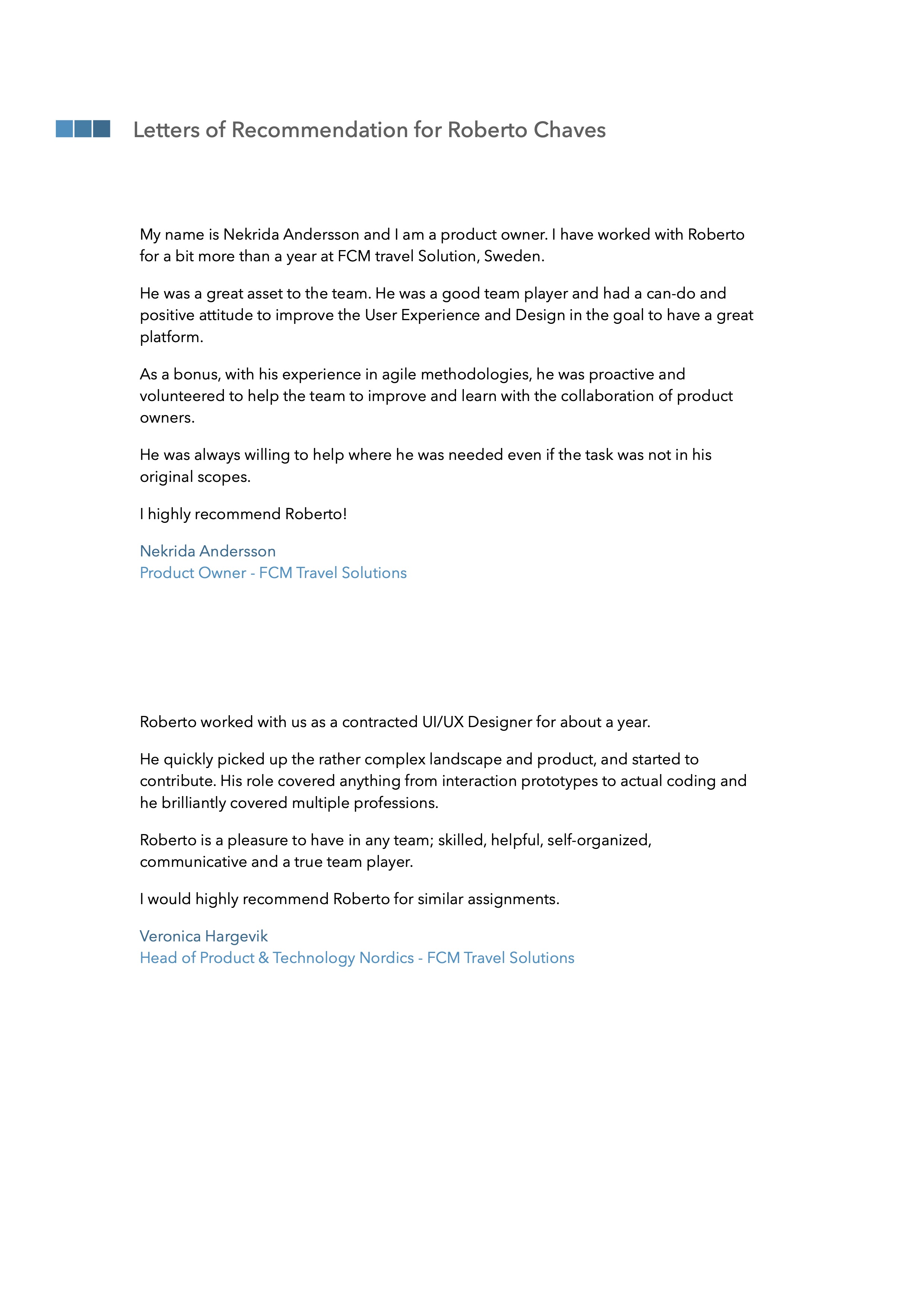 “Roberto worked with us as a contracted UI/UX Designer for about a year. He quickly picked up the rather complex landscape and product, and started to contribute.
