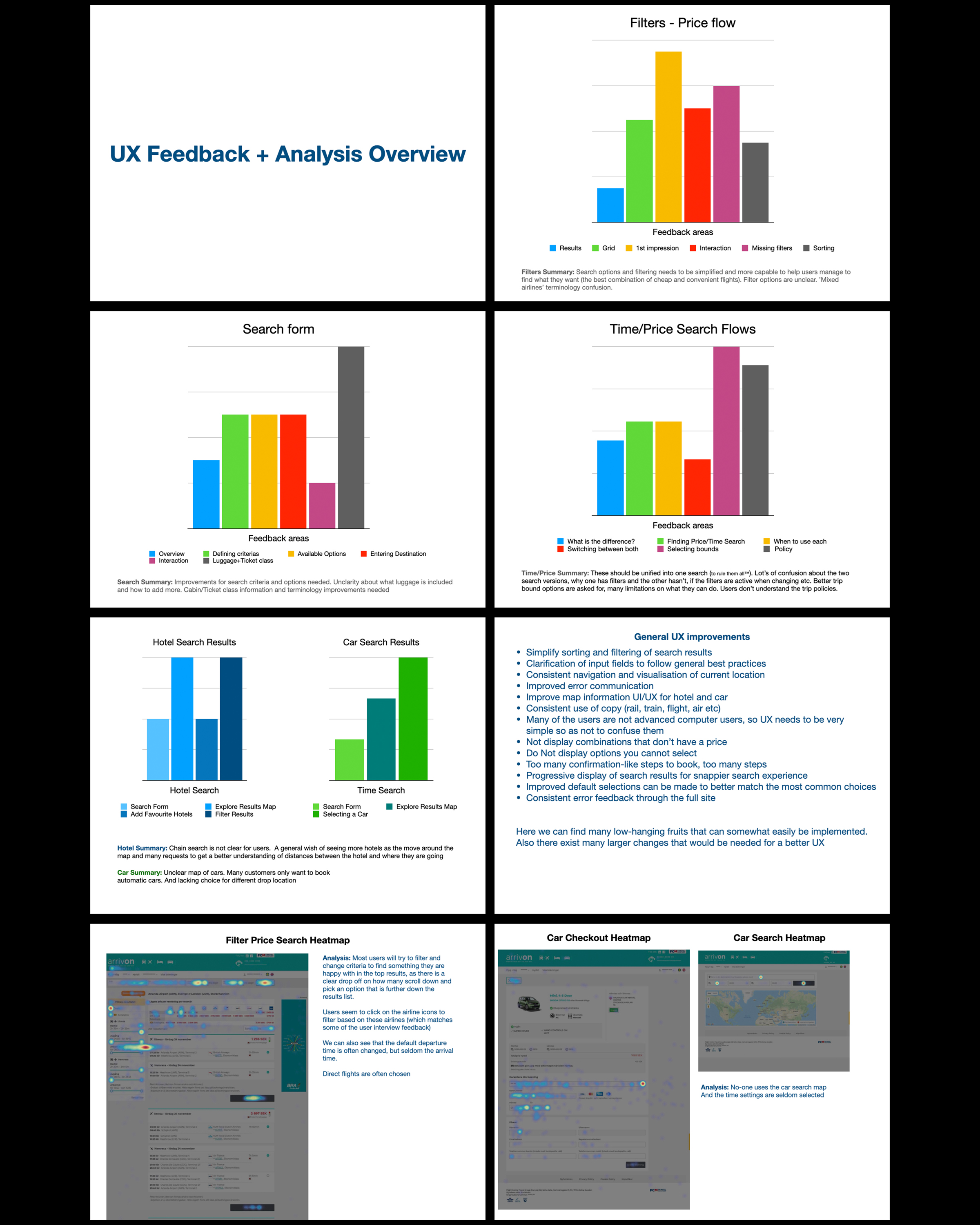 For this project I presented an initial 32-page slide deck filled with screenshots and post-it notes for the team. It let me gather their input and understand the decisions and thinking that had led to the product’s current state.