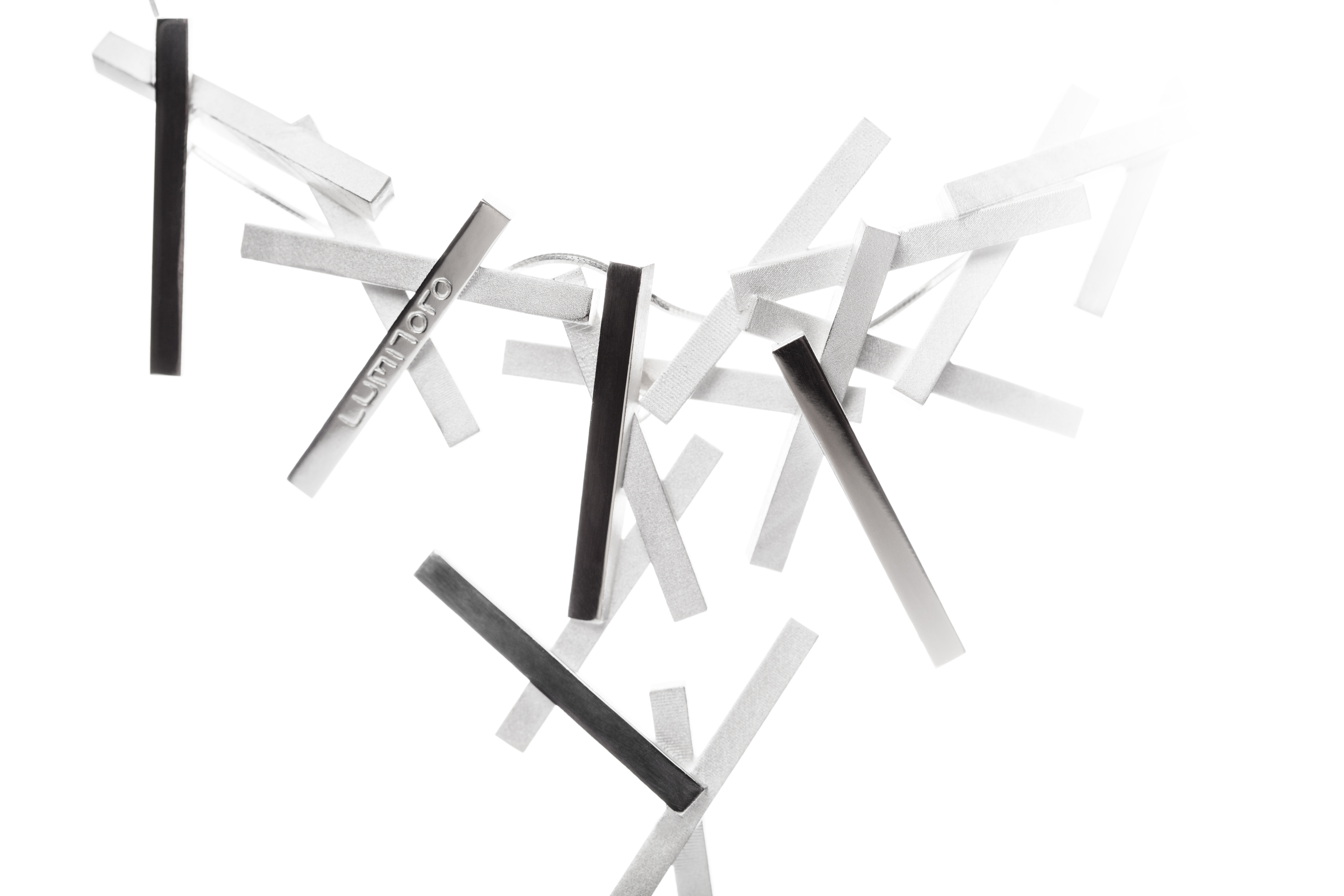 The ‘right material’ depends on the visual aesthetic, the tactile sensation and the complexity of the design. We learn more about the opportunities and limitations of each material as we go. For example, the large Stickii necklace can’t be printed with the stainless steel process we use, which is the reason the Stickii pendant was created.”